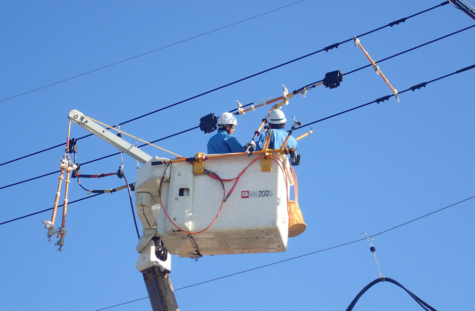 配電線工事、一般電気工事、通信線工事をメインに作業していただきます。常時3~4人構成の班で行動しており、班毎に作業内容が異なります。詳しくは、事業紹介のページをご覧ください。Q.電気工事を今まで経験したことがなくても大丈夫ですか。